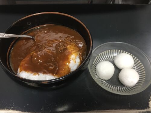 今日も丼シリーズでした。ローソンセレクトの大盛りハヤシライスを頂き ました。大福を含めて870キロカロリーくらいありました。午後からも 頑張っていきましょう♪