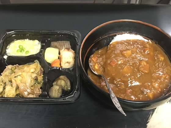 お昼は職場でダイエット弁当とカレーライスにしました。おかずはプルコギ