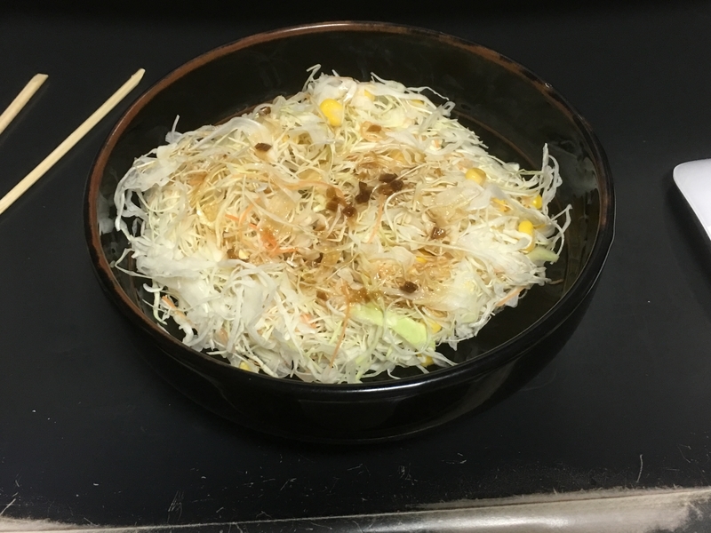 お昼はサラダとダイエット弁当でした。スープ餃子などで580