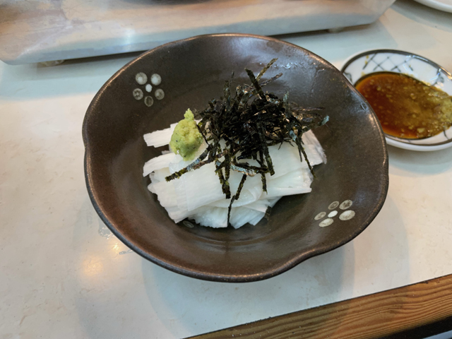 山さく。長芋の短冊切りです。こちらは肉を頂いたときのお口直しにピッタリ♪