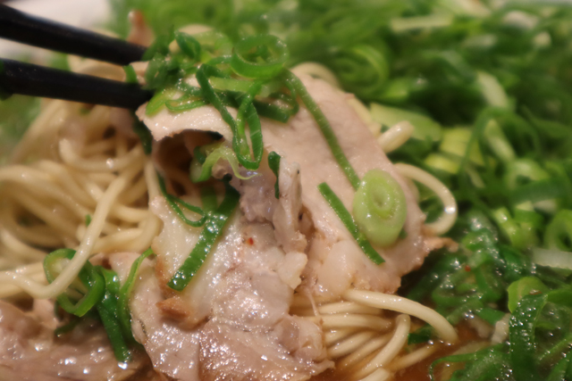 チャーシューは豚もも肉でしょうか?3〜4枚入っていたかな?麺やネギに紛れてい