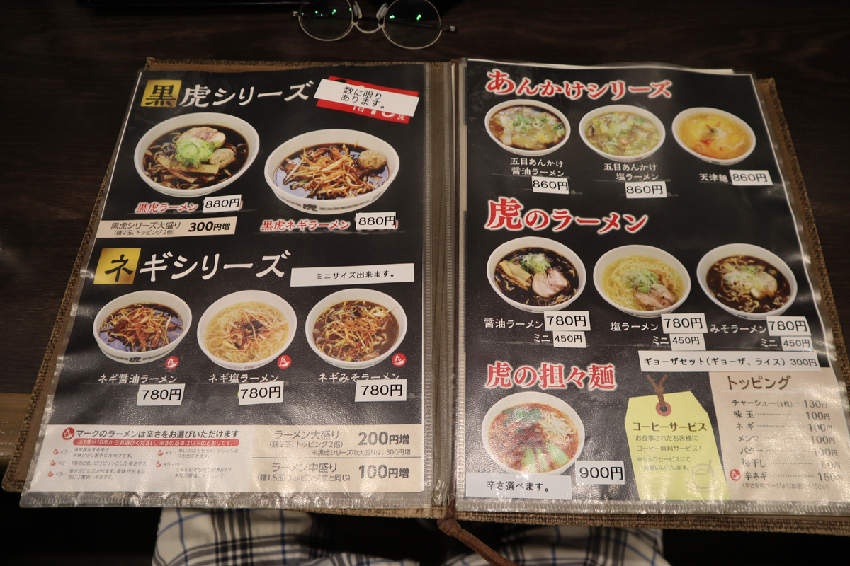 今回は定番メニューから黒虎ラーメンを注文しました。こちらは今年の1月に初めて