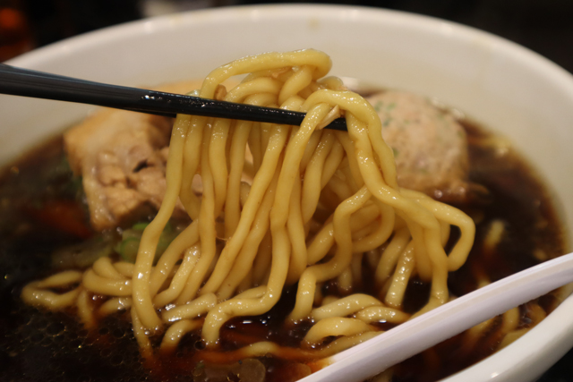 麺は自家製の太めの縮れ麺。比較的コシがありますしスープとも絡んでちょっと麺に