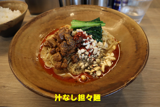 もちろん汁なし担々麺を注文しました。こちらにはやはり〆のライスが必要ですので