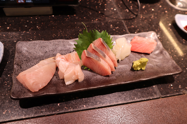 造り盛り合わせです。今回は本まぐろ中トロ、地物紋甲イカ、北海道産天然ぶり、天