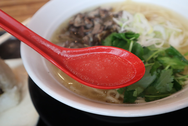 スープは豚骨、鶏がらベースに香味野菜や節系を合わせたもので香ばしい塩味です。