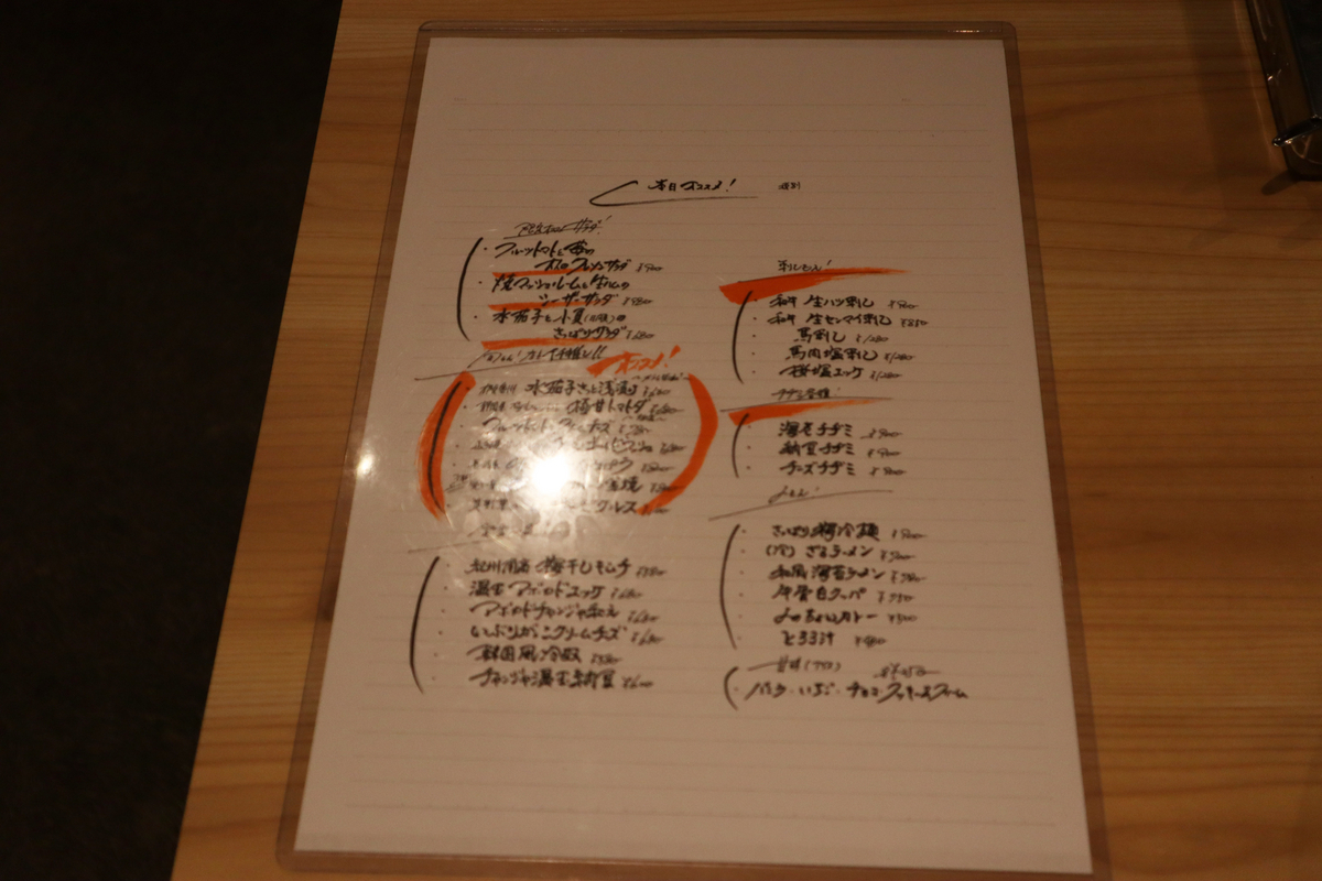 この日のお薦めメニューです。では今回頂いたものを。。。