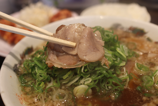 チャーシューは豚もも肉のスライスしたものです。数枚入っていましたけど京都系の