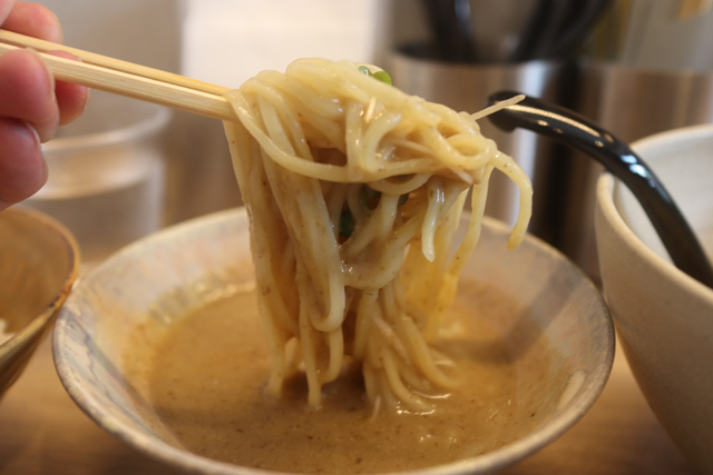 けて頂きます。つけダレがホントに良く絡んでいて麺を付けるたびにドンドンとつけダ