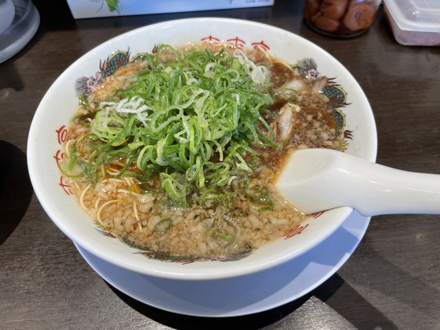 麺を食べ終わって残った九条ネギをレンゲですくいながら半飲完食しました。やはり