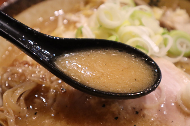 スープは熱々でラードたっぷりの感じで味噌やモヤシなどの野菜の味わいがしっかり